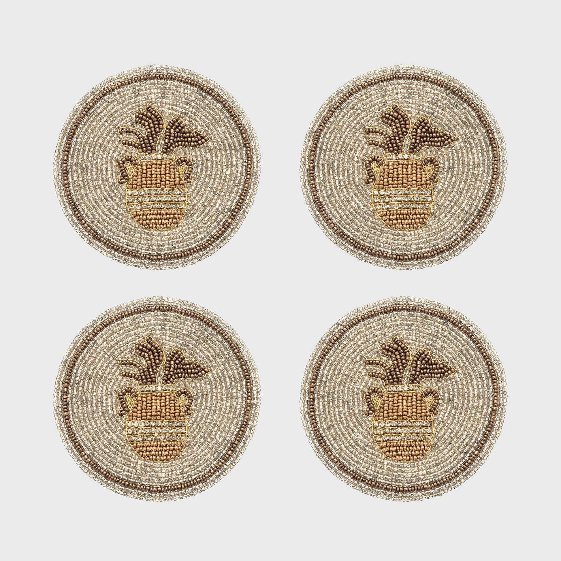 Set of four glass and metal coasters designed for everyday protection.