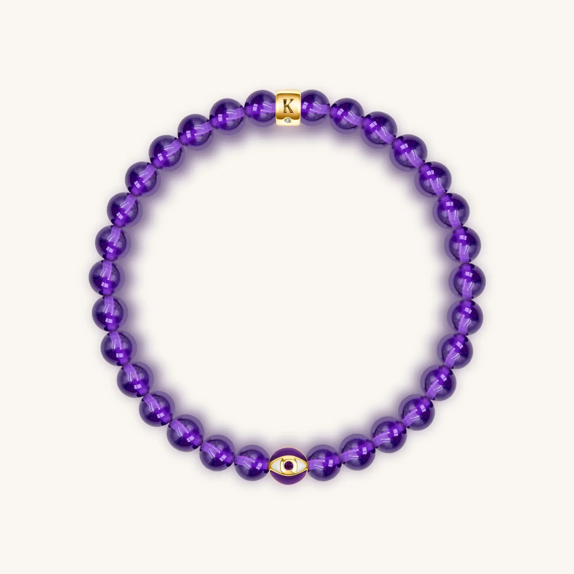 Calming Reflection Amethyst February Birthstone Evil Eye Bracelet