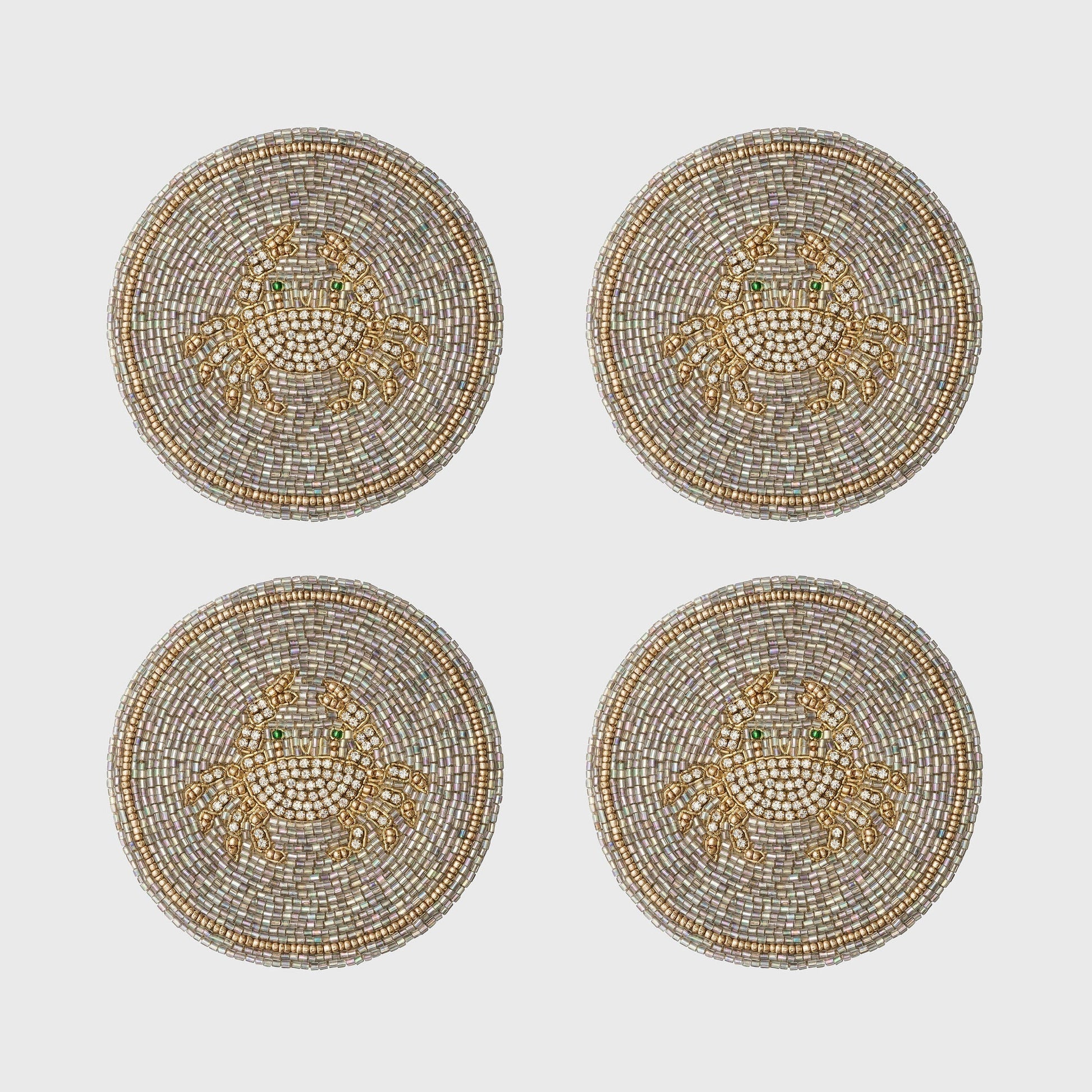 Arrives as a coordinated set of four Cancer zodiac coasters.
