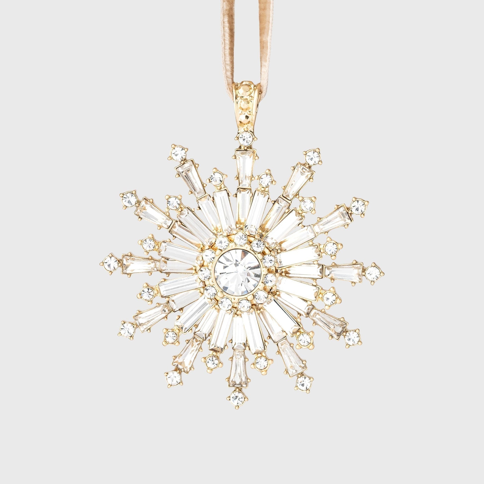 It's hard to describe just HOW sparkly this snowflake ornament is... we use only glass stones and all their cut facets catching the light make this treasure just out of this world! Create a dazzling winter wonderland on your tree!