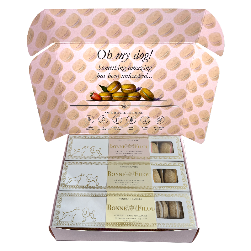 Make your furry friend’s day extraordinary—order the Dog Macaron Combo Gift Box today and treat them to the ultimate canine indulgence!