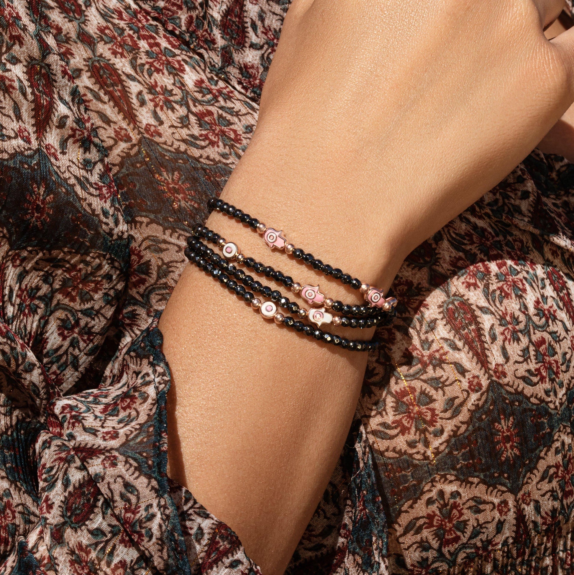A positive mindset is an important precursor for the attainment of your goals, no matter their nature. Exactly that is provided by our mighty "Enduring Aura - Hematite Enamel Evil Eye Hamsa Bracelet". Ground yourself in persistence for accomplishing your dreams with the everlasting Hematite, ancient Hamsa, and enchanted Evil Eye. Like a new comrade, this accessory will prove to be something uplifting and calibrating for your soul.