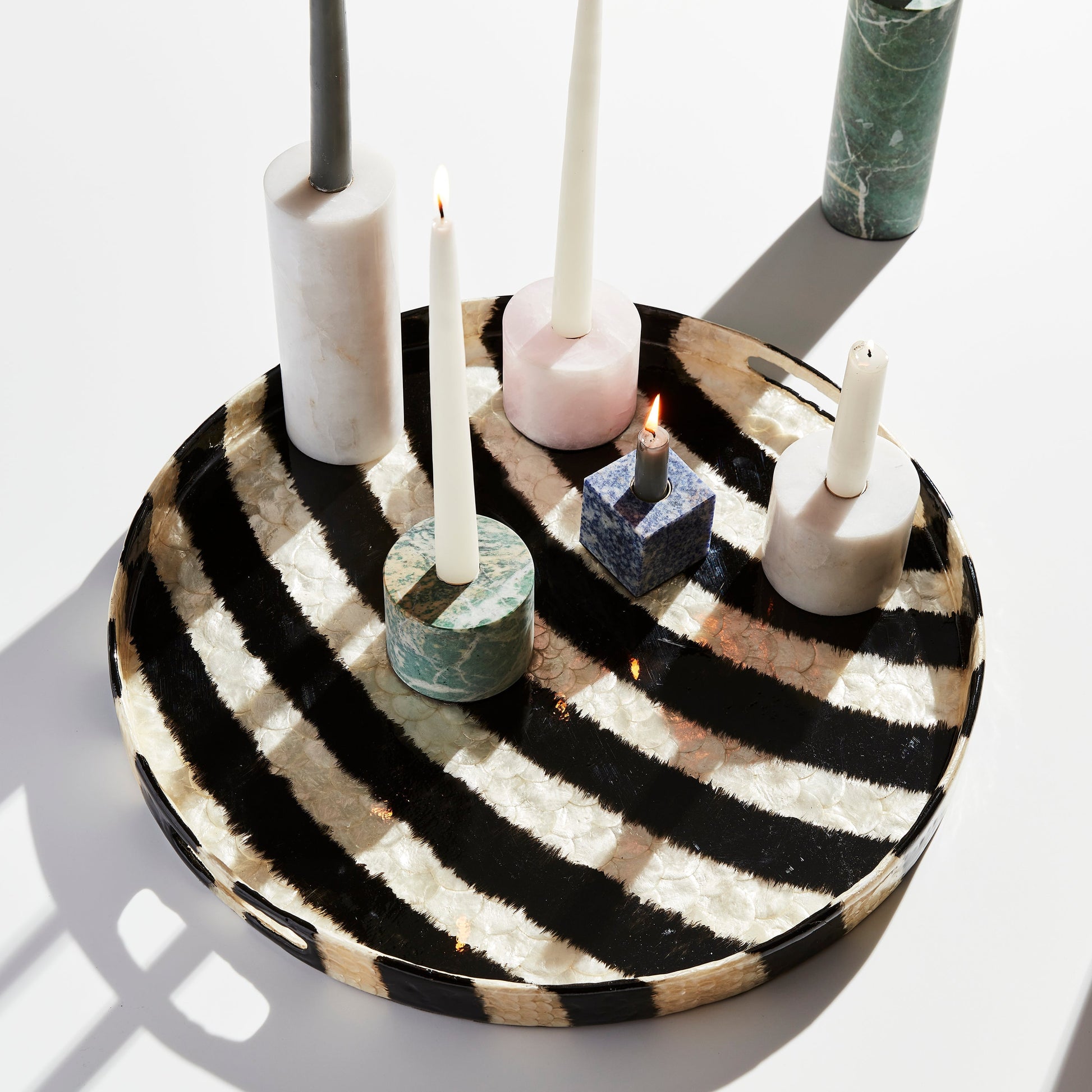 This decorative tray is made from hand-pieced capiz shells and then hand-painted to create this 'blow your mind beautiful' tray. I am seeing it sitting on an ottoman, used as a bar tray, at the pool house... it really is a work of art and the scale makes it a showstopper!