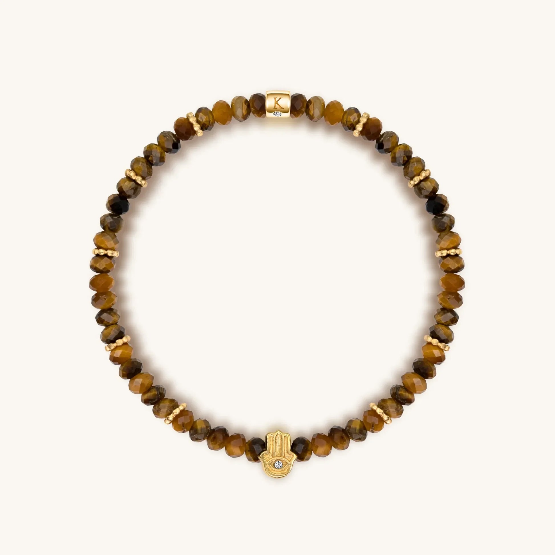 Take courage and stay steadfast—you are on your true path. The "Fierce Spirit - Tiger's Eye Labradorite Pyrite Triple Protection Bracelet Stack" fills your spirit with positivity and the highest vibration. The Tiger's Eye rings you good luck; Labradorite fuels you with energy, while Pyrite ignites your intrinsic passion. When fusing those three energetic currents, amazing things and positive karma are bound to be attracted. Additionally, Evil Eye, Hamsa Hand, and Elephant symbolism will give you the optimal amount of spiritual shielding.