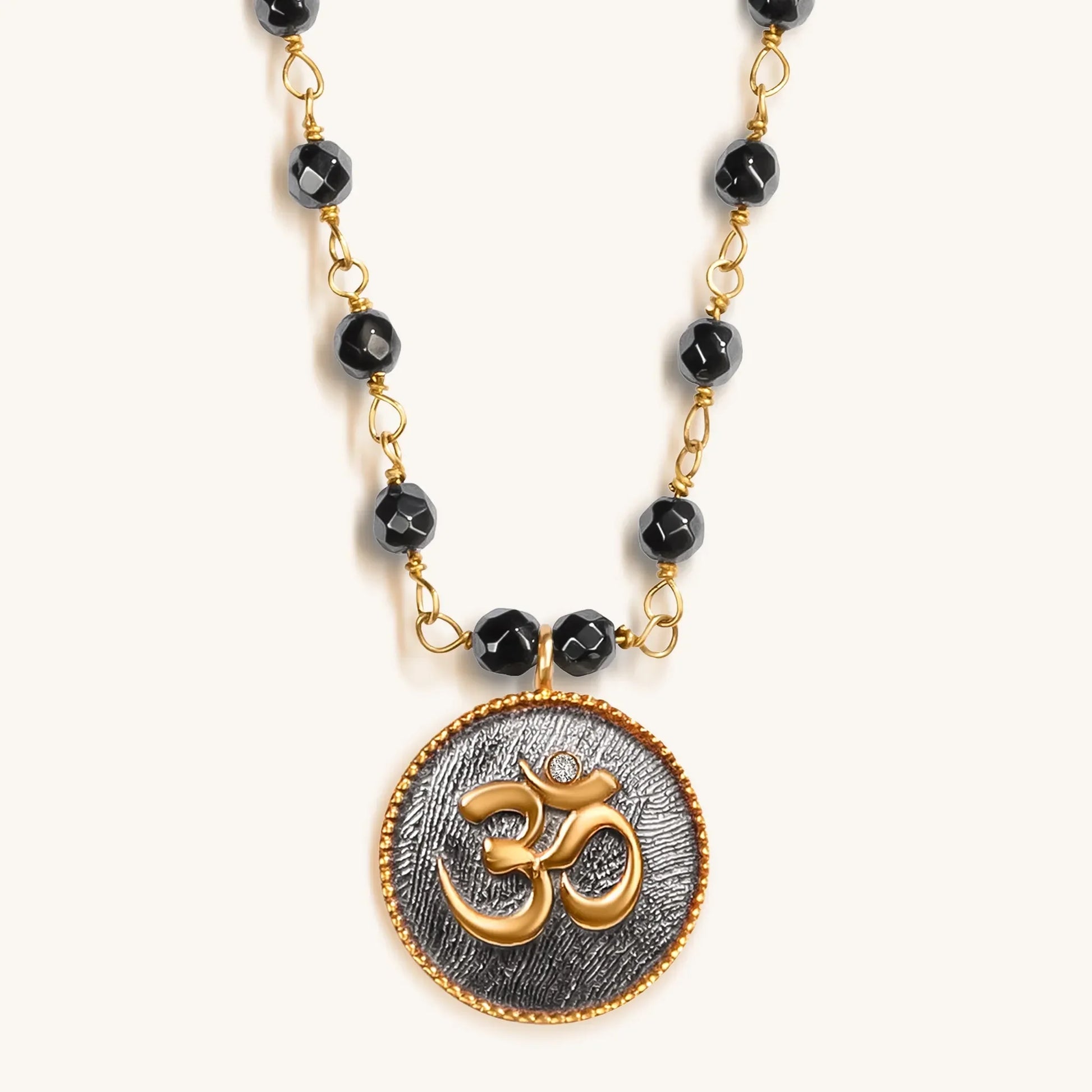 Under $100 — A thousand secrets are hidden in the power of stillness — this grounding necklace encourages calm, focus, and protection through the strength of hematite stones and the sacred OM symbol.