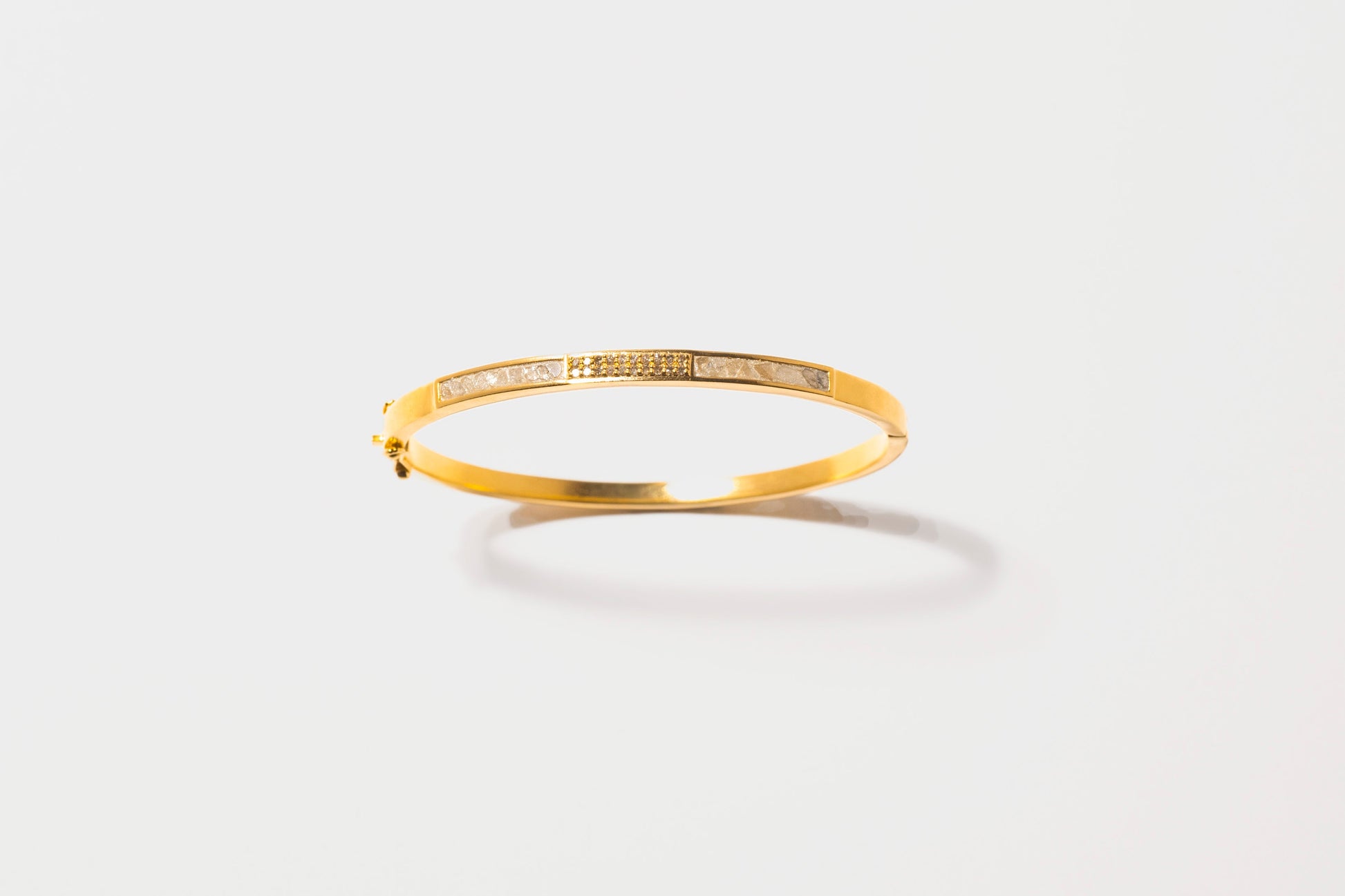 When words aren’t enough, let brilliance do the talking. The Kangra Gold Vermeil Bangle Bracelet celebrates love and light — a timeless symbol of grace and connection. Each bangle is handcrafted with sliced raw uncut and pavé champagne diamonds, set in sand or silver resin framed by radiant 18k gold vermeil.