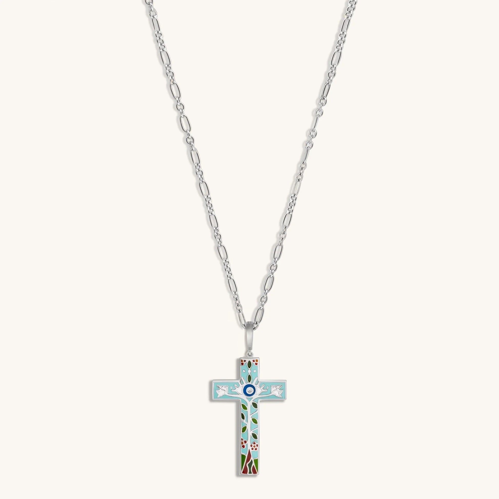 Wisdom comes from a quiet mind and a peaceful heart. This limited-edition cross charm necklace is a stunning symbol of faith, protection, and timeless elegance — plated in rhodium and set with sparkling diamonds for a refined, heirloom-ready gift.