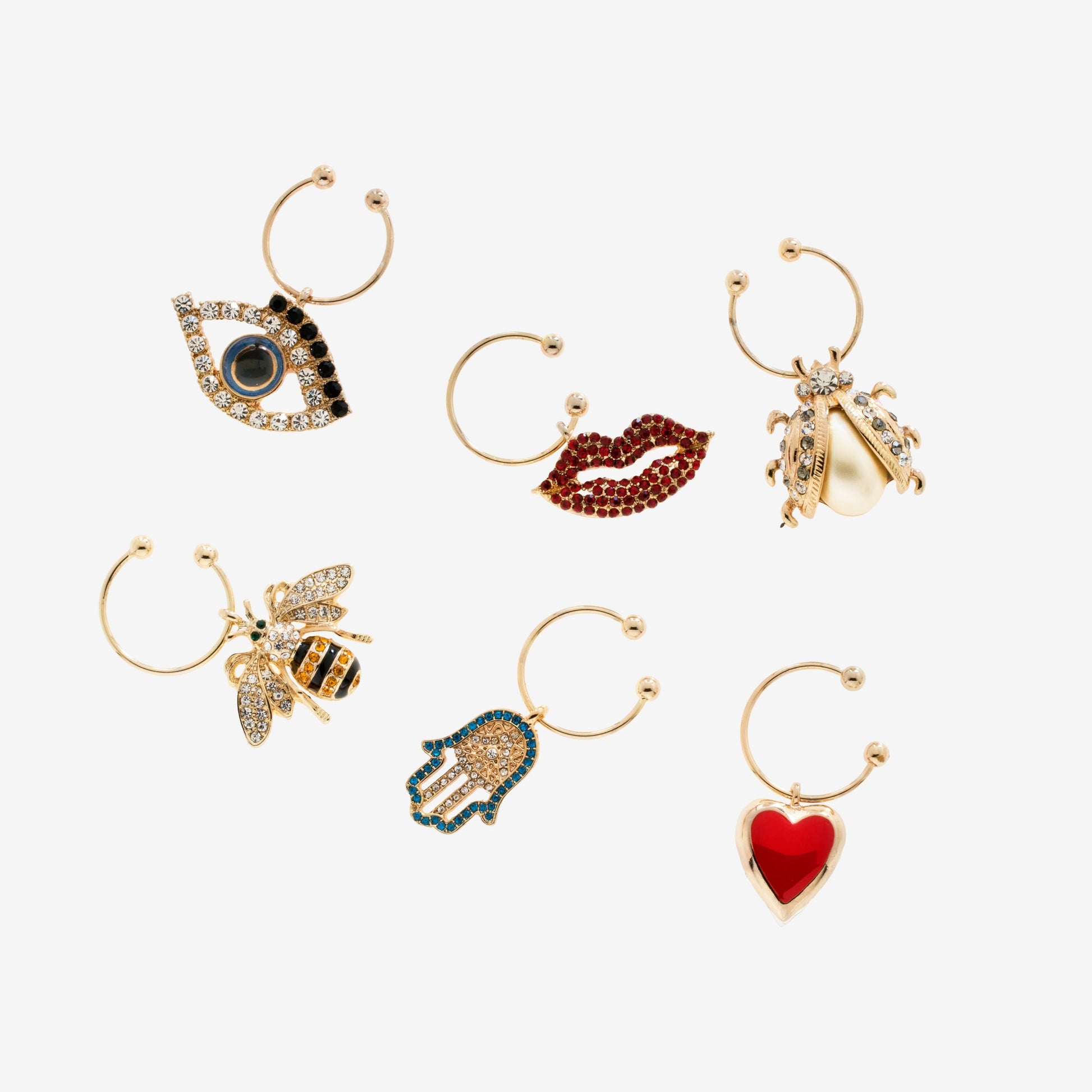 These lucky charm glass markers are perfect for every occasion. All exquisitely bejeweled or enameled... these are stunning wine charms and will truly be a delightful party addition. Pair these with the matching cocktail picks and our Evil Eye or heart coasters for an amazing hostess gift they will want to use right away!