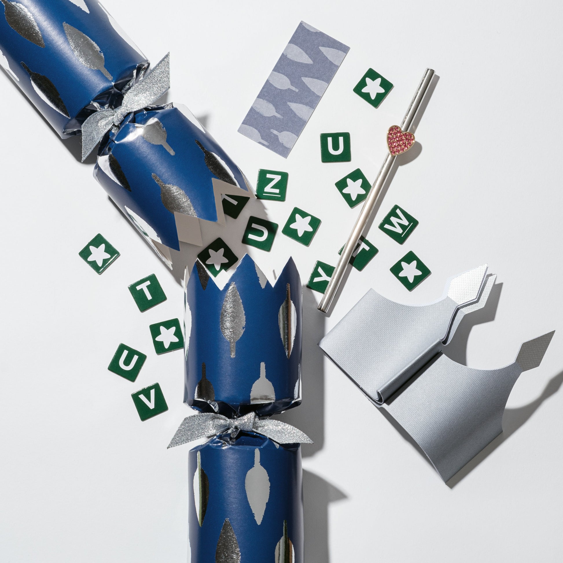Arrives as a boxed set of six navy luxury celebration crackers.