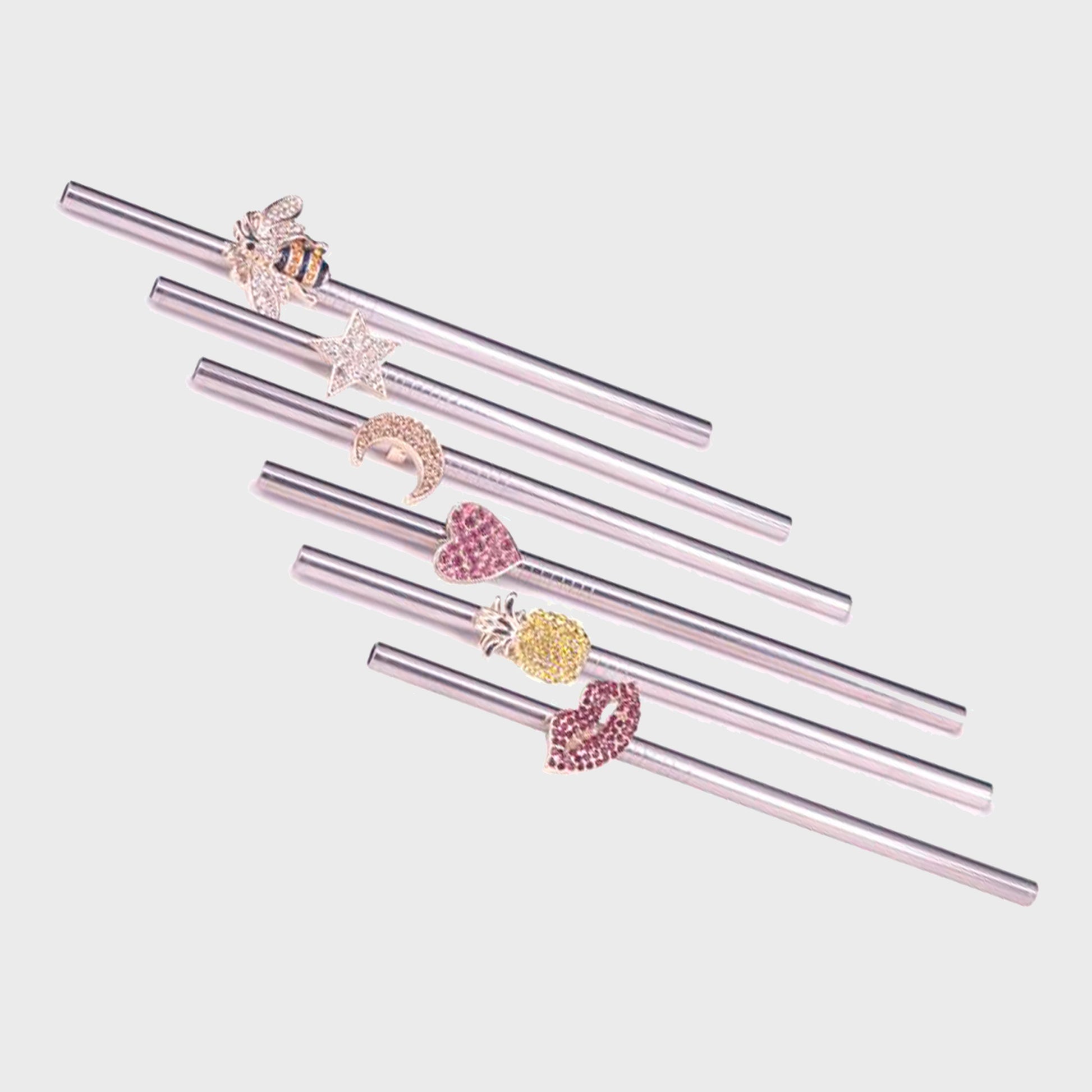 Jeweled cocktail straws can be used immediately to mark glasses.