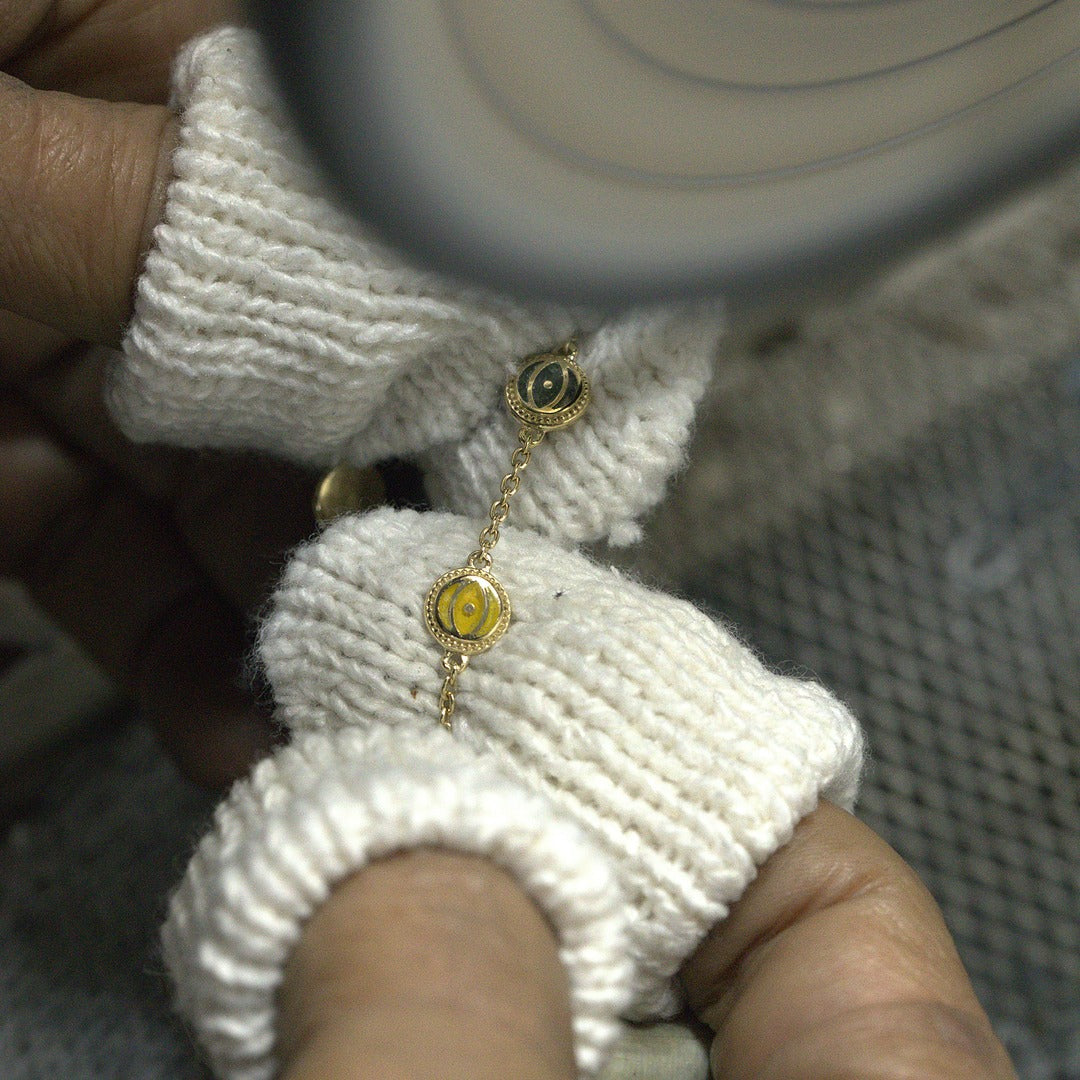 Charms and stones: 10 mm charms, mixed gemstones (carnelian, malachite, tiger's eye, amethyst, citrine, peridot) and symbolic motifs (Evil Eye, Hamsa, Heart, Moon, Star).