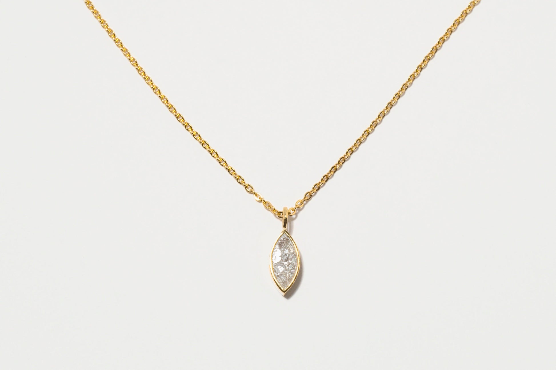 In the box: One Nayika gold vermeil pendant necklace with sliced raw diamond set in white resin.