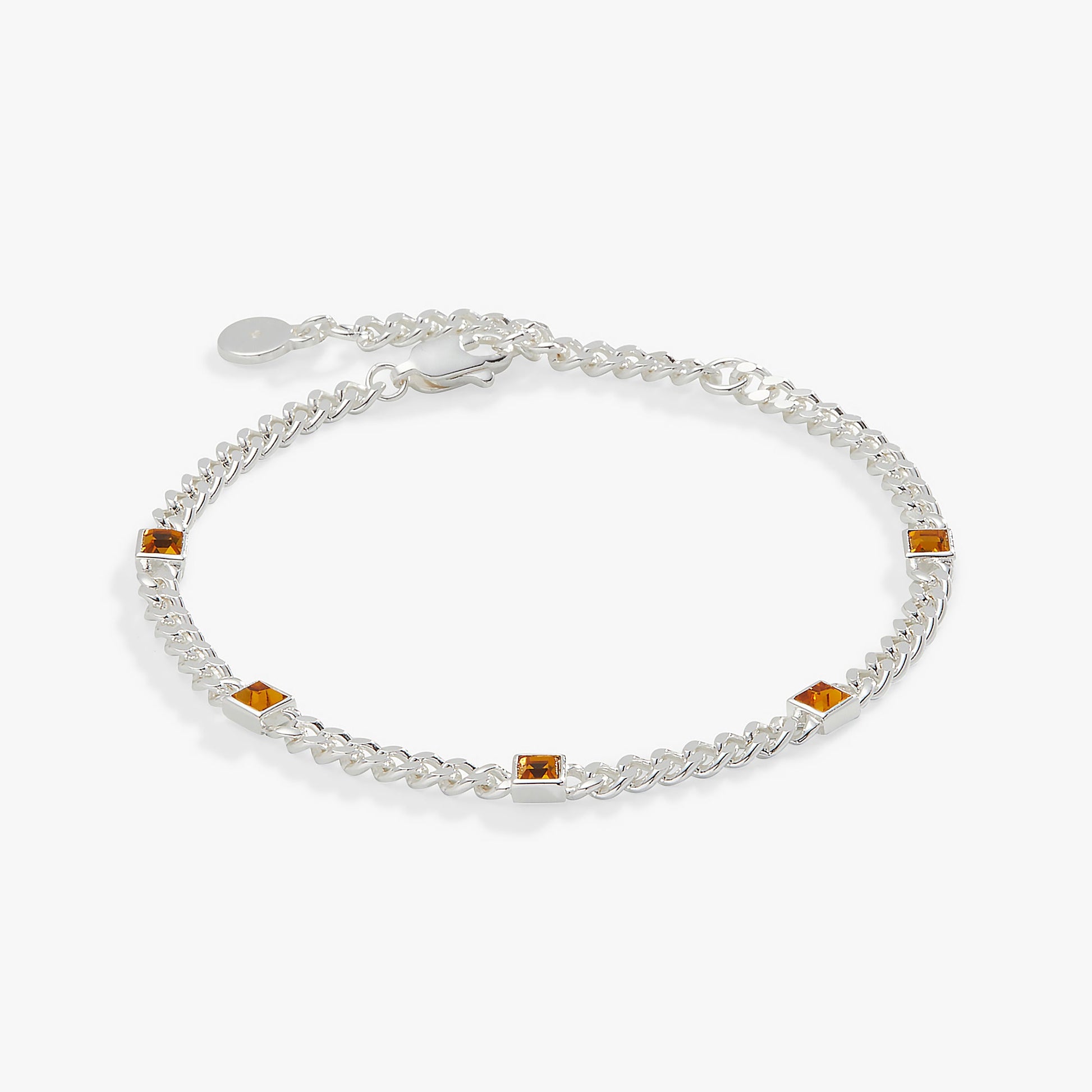 Under $30 — A vibrant topaz bracelet celebrating November with warmth clarity and timeless curb chain design.