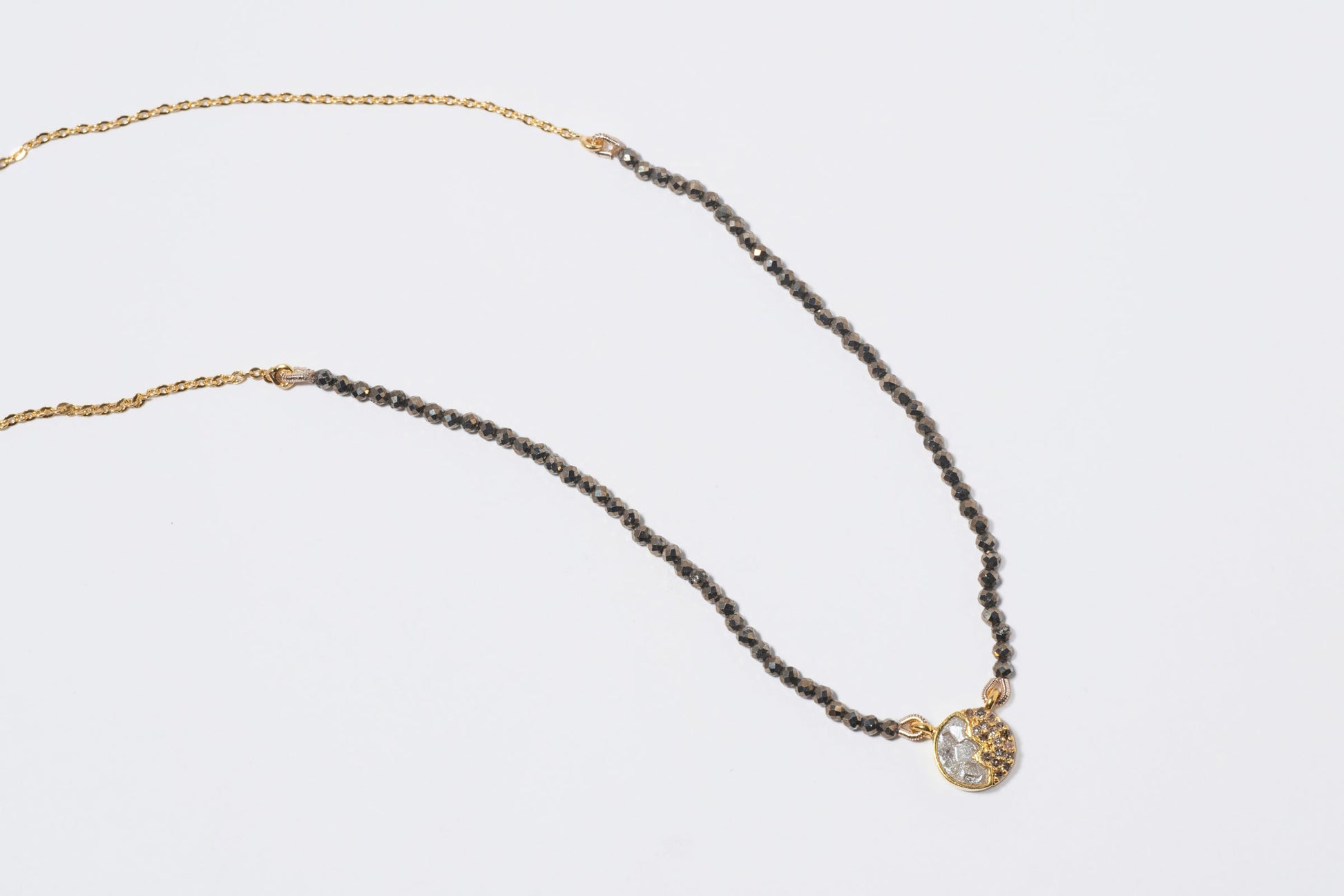 Designed to shine with natural beauty—the Raina Gold Vermeil Pendant Necklace fuses uncut raw diamonds with pavé champagne accents and grey pyrite for a distinctive shimmer. Handcrafted in 18k vermeil, it’s a perfect keepsake for any occasion.