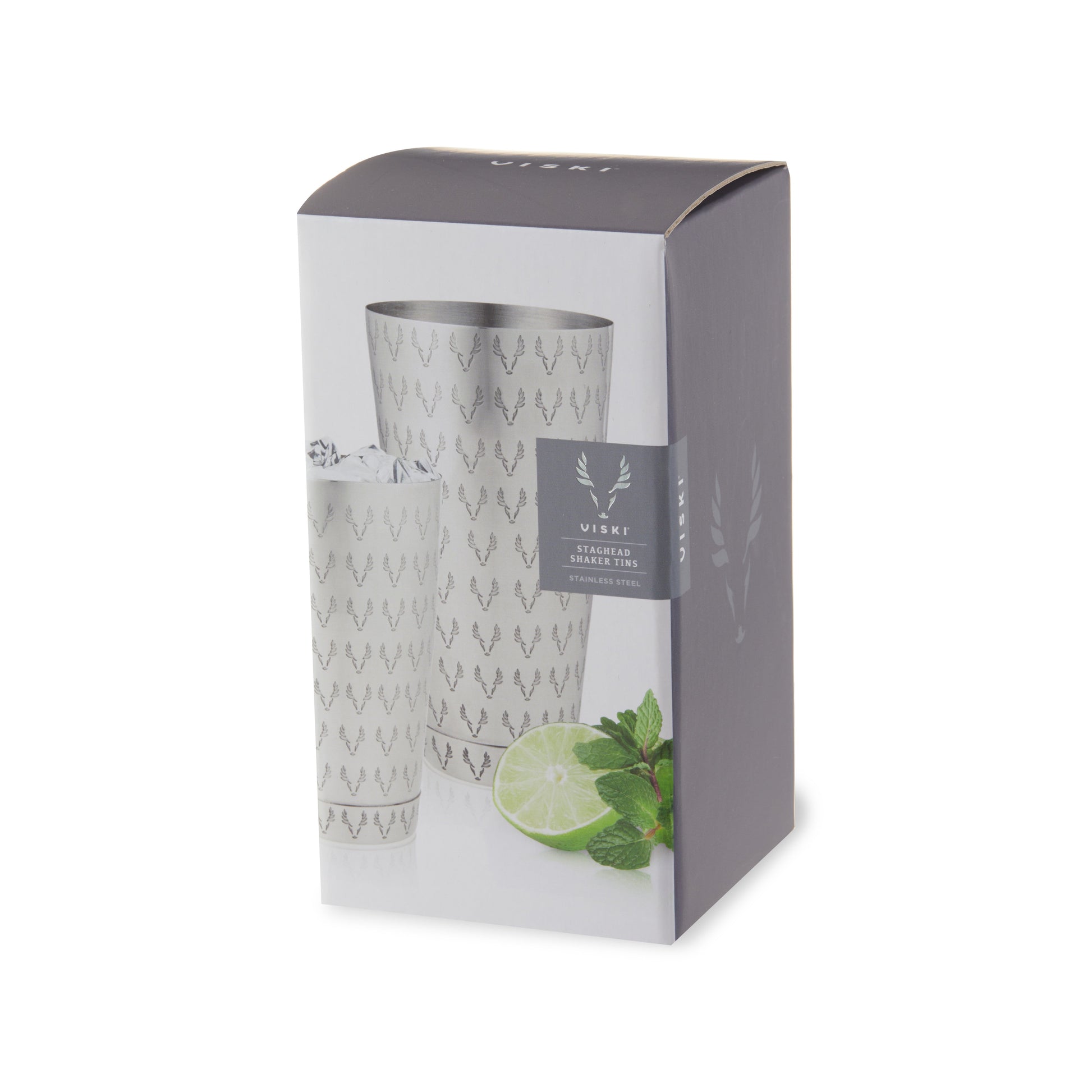 Beloved by bartenders and known for supreme functionality, Boston shakers are precisely weighted for perfect balance. This set is designed to close and separate smoothly and features a unique detail—a repeating staghead etched into the stainless steel.
