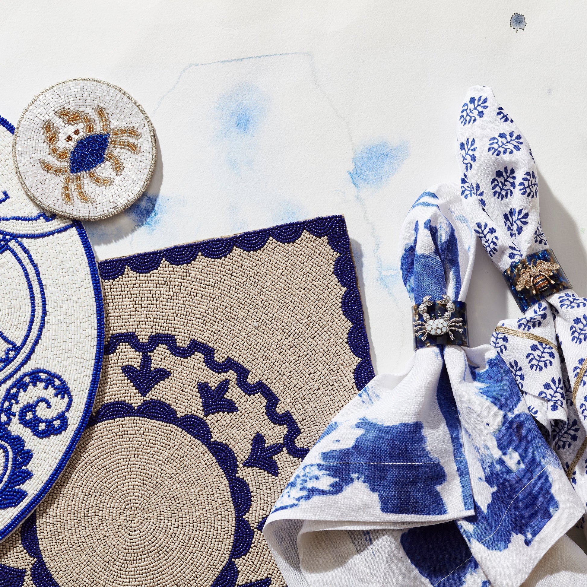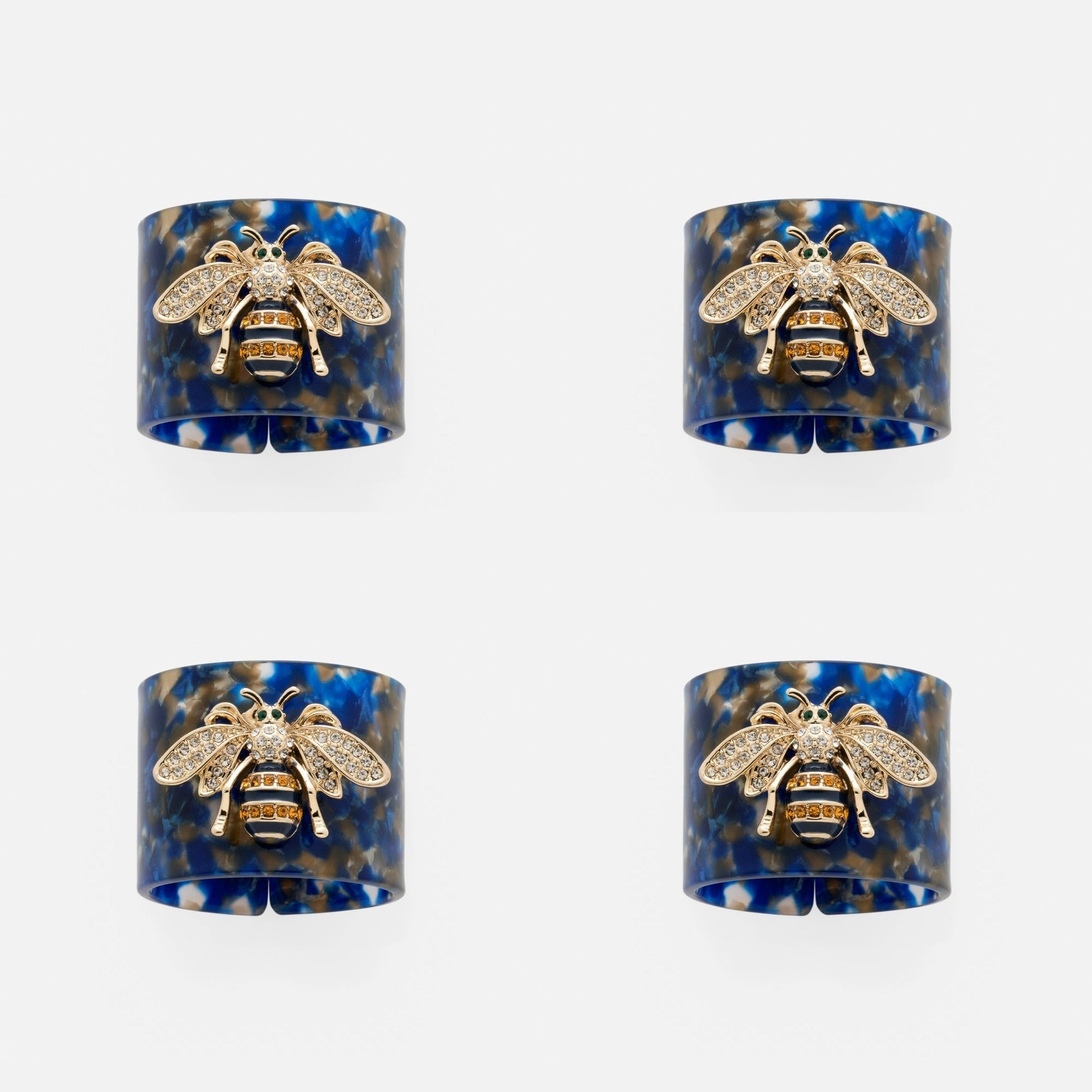 Stripey bee resin napkin rings, blue tortoiseshell, set of four