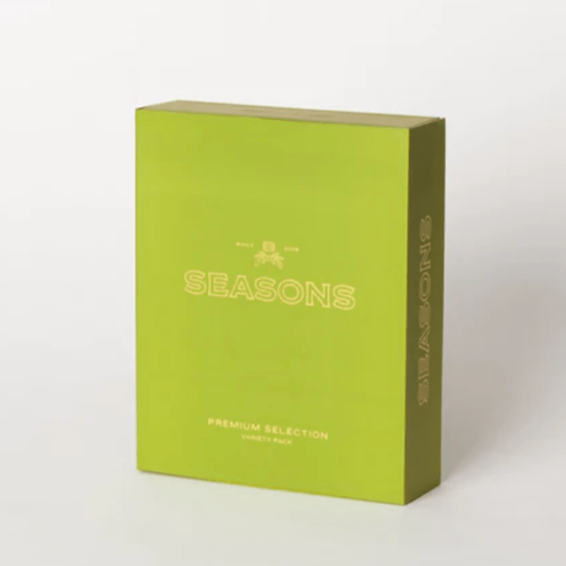 Elegant Presentation: Make gifting effortless and memorable; the Seasons green signature box is wrapped with tissue and ribbon.