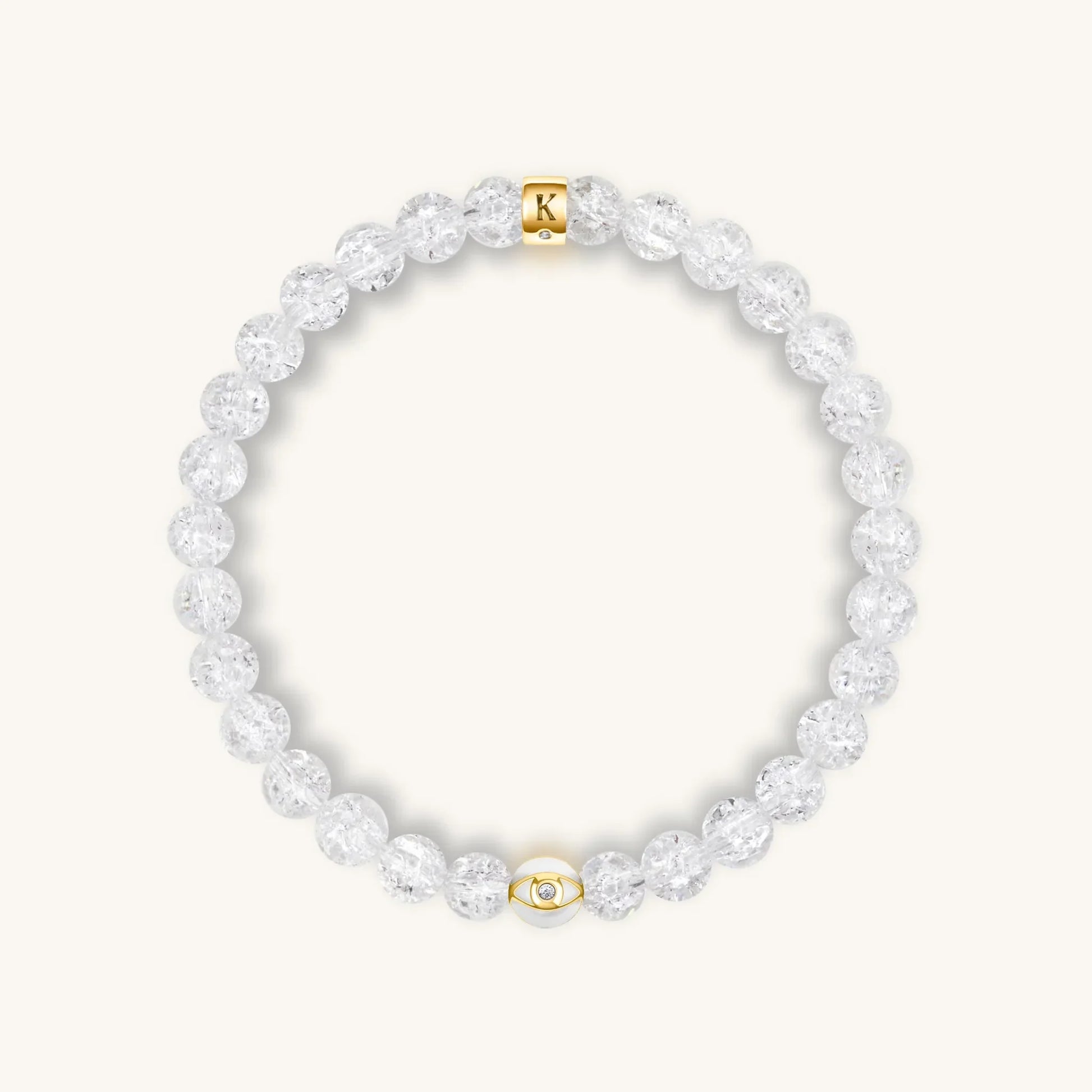 In the box: 1 Utmost Clarity crystal quartz April birthstone evil eye bracelet (6.5"); 1 velvet pouch.
